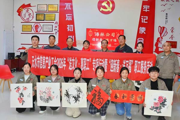 为丰富职工精神文化生活,关爱职工身心健康,传承弘扬中华优秀传统文化,海林公司于2月9日下午在技术研发中心三楼会议室举行2026“送文化·惠职工”专项行动暨“迎新春·送万福”职工服务活动。公司特邀天水书画研究院院长李茏,天水中国画研究院副院长、秦州区美术家协会副主席高全生,中国书画家联谊会会员、甘肃省书法家协会会员、市政协原二级调研员宋桂文等书法家及天水康复医院的专家们来到现场,为职工送上浓浓的新春祝福。